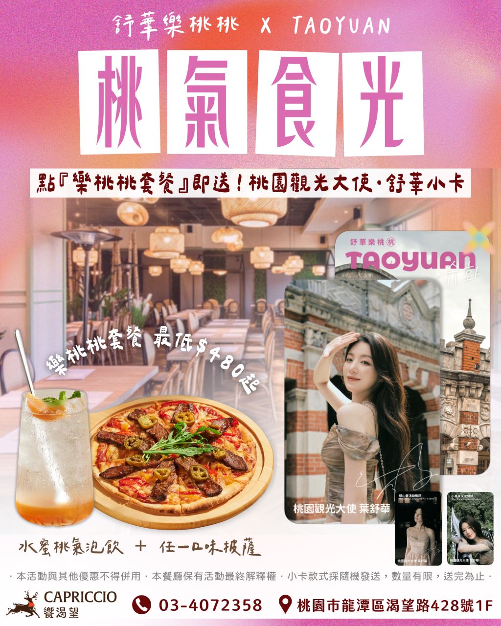 在Capriccio饗渴望點『樂桃桃套餐』,即可獲得限量【舒華小卡】乙張,甜蜜開啟你的桃園時光💖